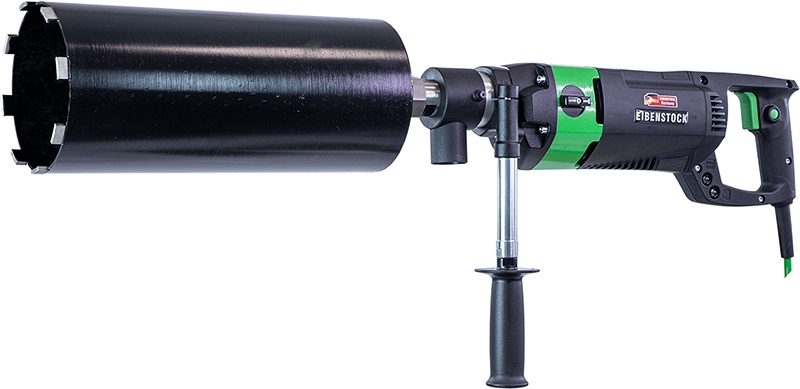 Дрель для сухого алмазного бурения с микроударом Eibenstock ESD 162 (Айбеншток ЕСД 162) предназначена для сухого сверления отверстий Ø 82 – 162 мм в особо твердых материалах, например, таких, как: железобетон; Ø 82 – 202 мм в материалах, например, таких, как: сильноуплотненный силикатный кирпич и кирпичная кладка; с высокой рабочей скоростью; идеальное решение для бурения скважин, где условия на площадке не позволяют проводить мокрое сверление (полые потолки и т. д. / предотвращение повреждения водой).