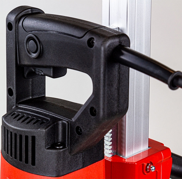 - Встроенные в каретку регулируемые направляющие обеспечивают легкую и плавную подачу сверлильной коронки